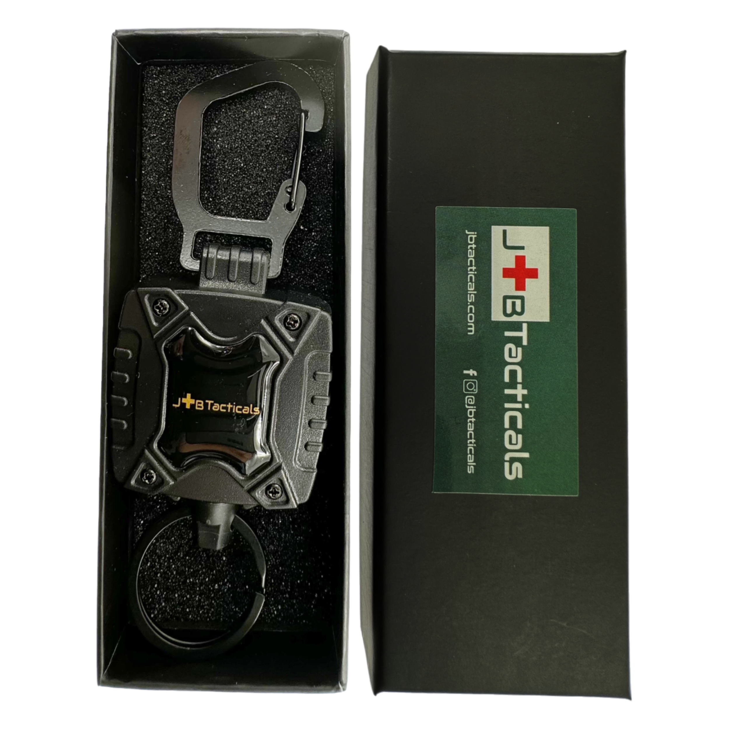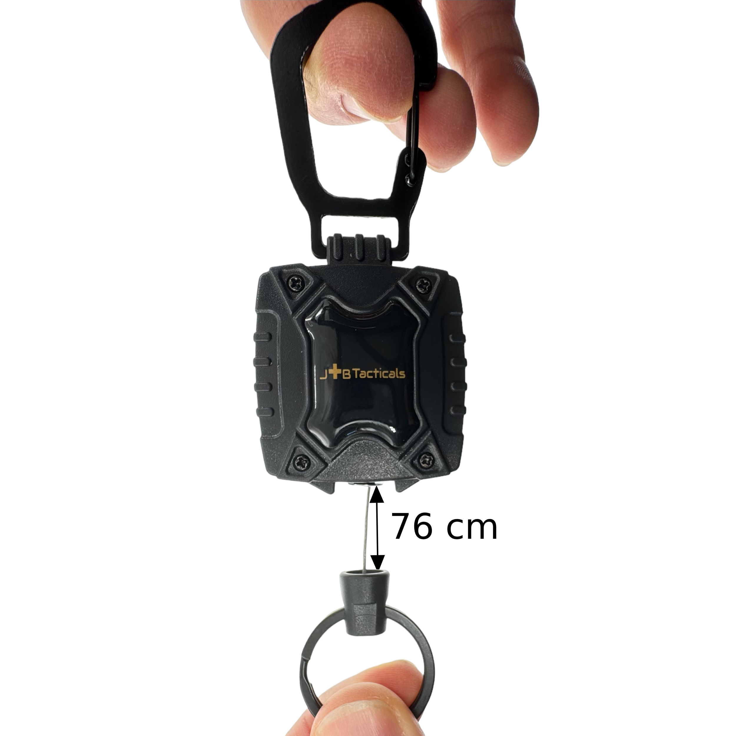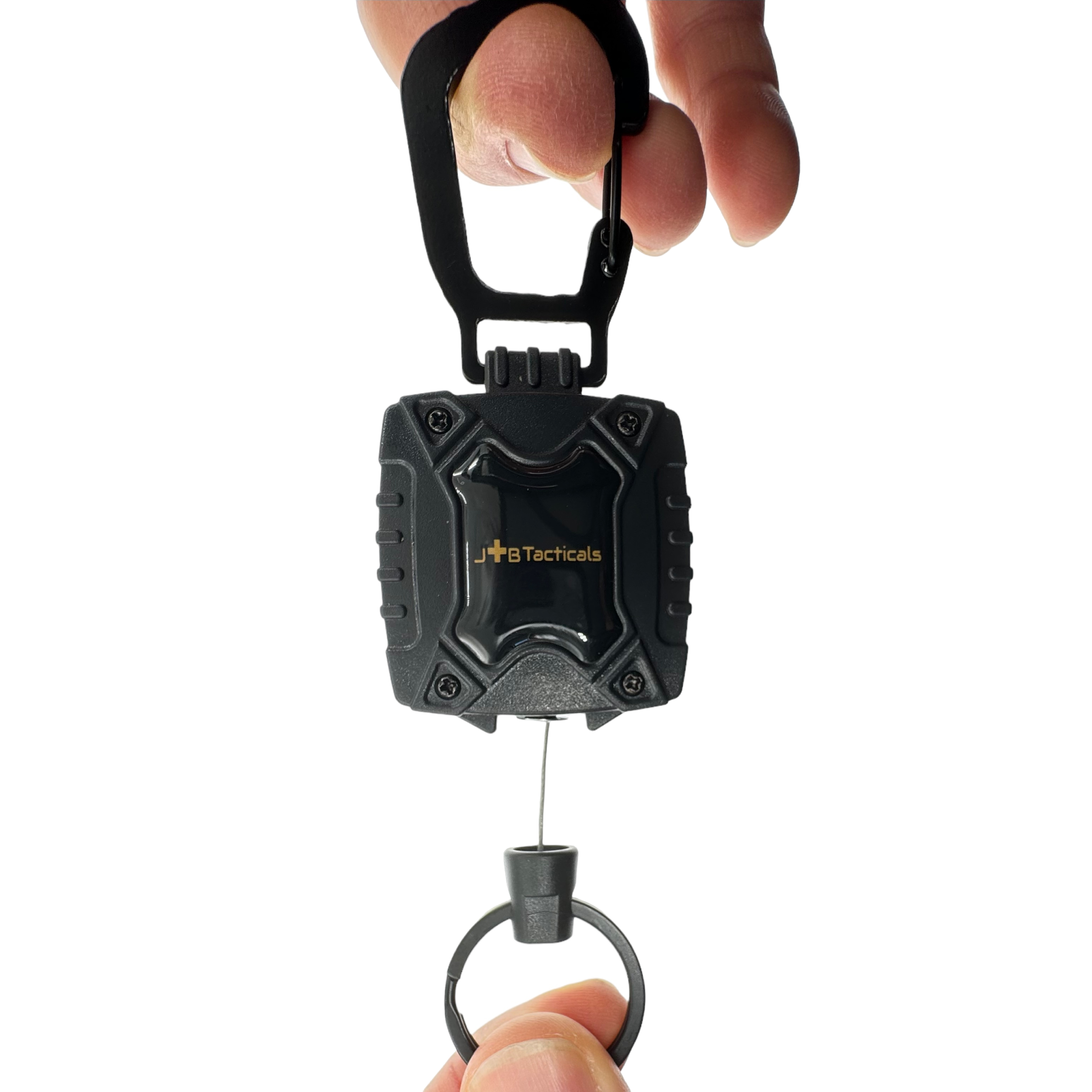 Doskonale widoczne logo producenta umieszczone jest jednej stronie retraktora, co dodaje mu profesjonalnego wyglądu oraz potwierdza wysoką jakość i markę JB Tacticals.