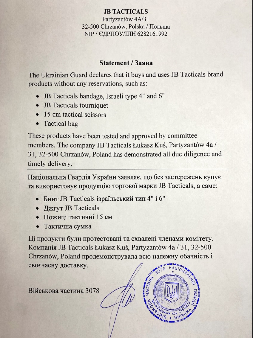 Produkt marki JB Tacticals zyskał uznanie i zaufanie naszych sąsiadów za wschodniej granicy !