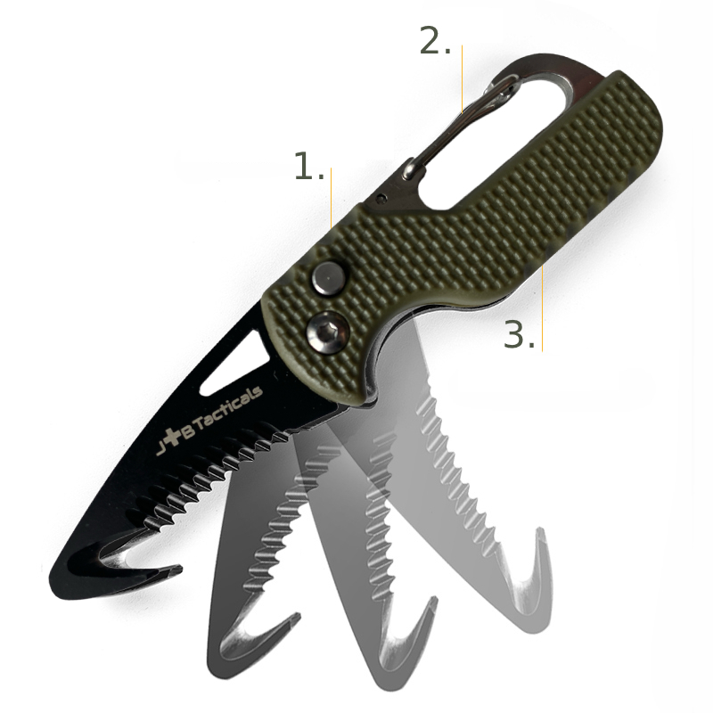 - Wielofunkcyjność i wszechstronność: Mini scyzoryk karabińczyk nóż składany Molle IFAK to wszechstronne narzędzie, które może być wykorzystywane zarówno do przycinania, jak i do pierwszej pomocy w terenie. Bez względu na to, czy potrzebujesz przeciąć liny, otworzyć opakowanie czy udzielić pomocy w nagłej sytuacji (np.rozciąć sznurówki w bucie,aby uwolnić skręconą stopę), ten mini scyzoryk spełni Twoje oczekiwania.