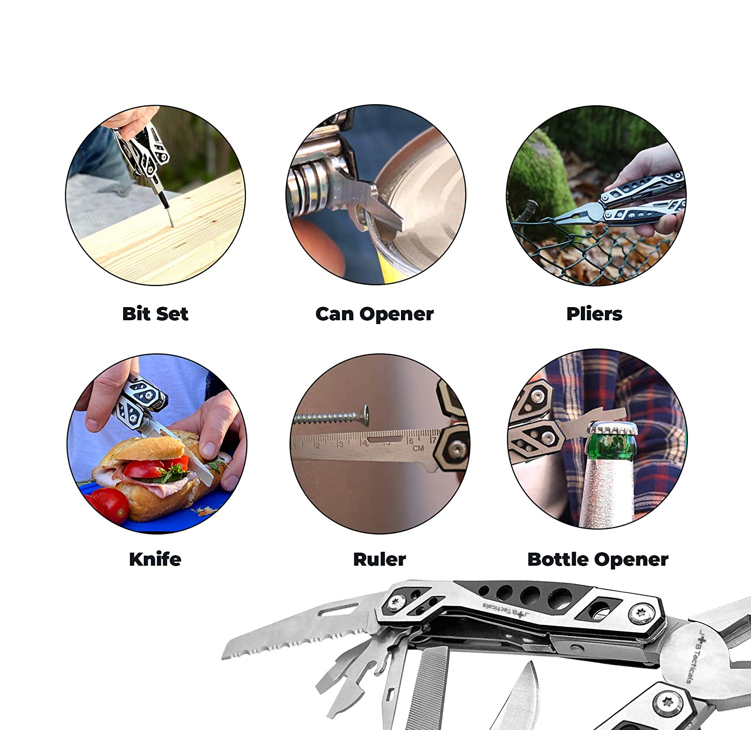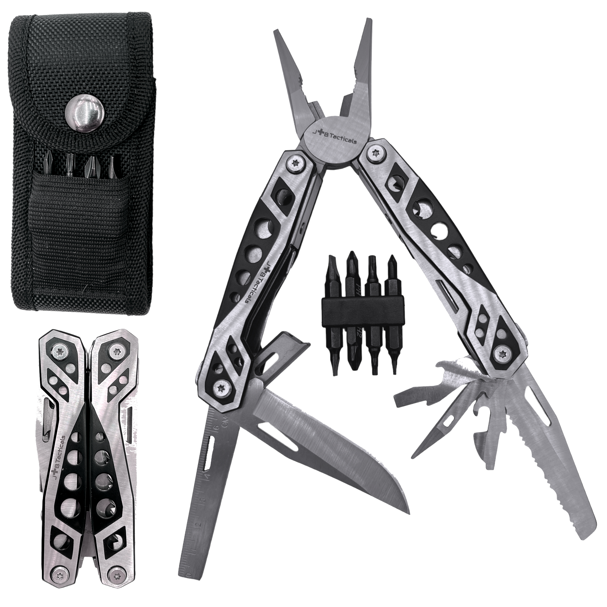 Przedstawiamy Państwu unikatowy Multitool JB Tacticals Narzędzie wielofunkcyjne 20w1 wykonane ze stali nierdzewnej, które jest niezbędne w każdym warsztacie, garażu, na kempingu lub w domu. Ten wielofunkcyjny scyzoryk/szczypce posiada aż 20 przydatnych funkcji, dzięki którym ułatwi wykonywanie różnych prac.