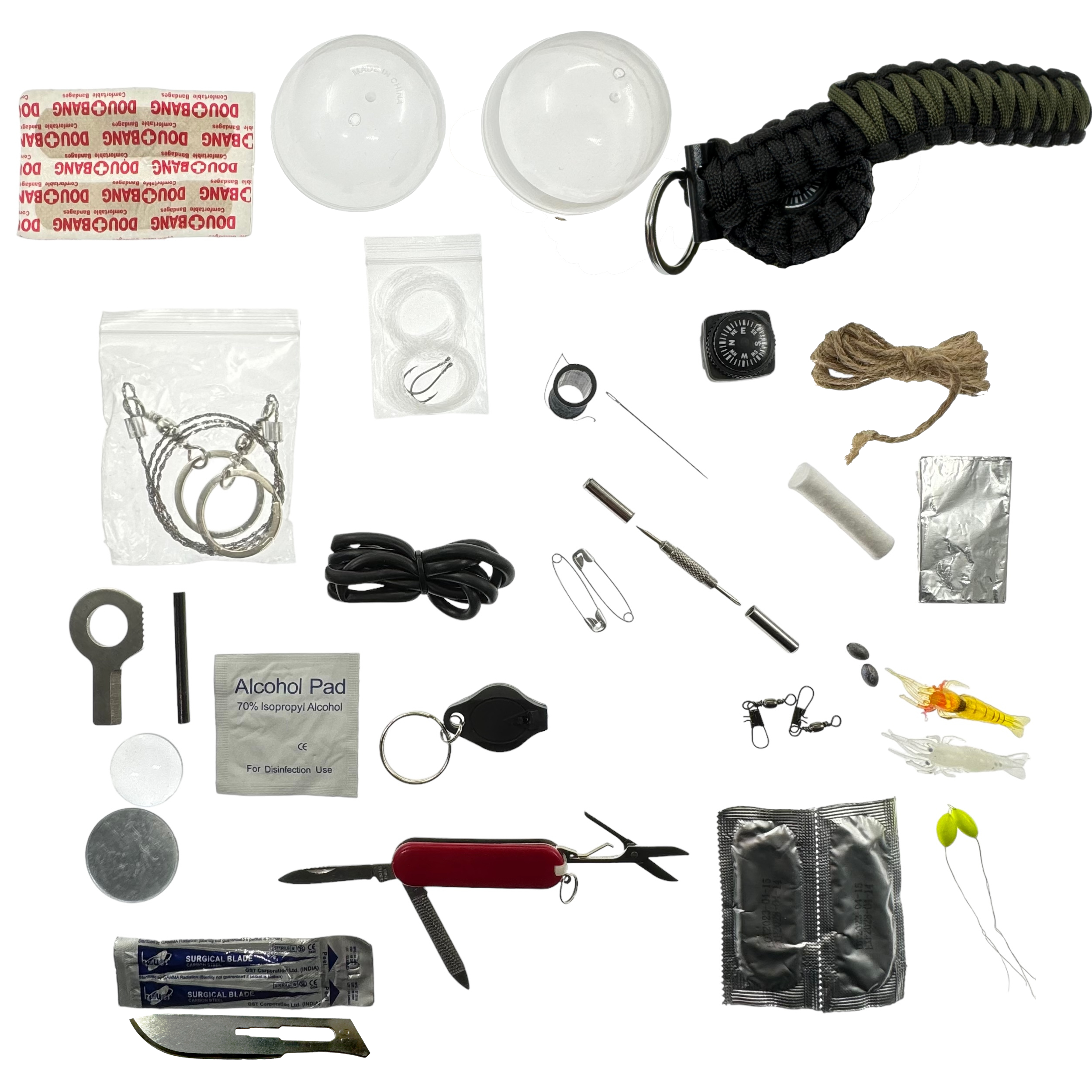 - Sznurek paracord: Dwa sznurki paracord, które są niezwykle trwałe i mogą być użyte do różnych celów.